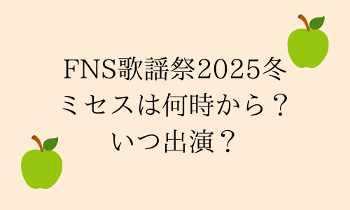 FNS歌謡祭が今年も2週連続で放送されます。 出演者にMrs. GREEN APPLEの出演が発表され、「いつ出るの?」「何を歌うの?」と気になる方多いと思います。 今回は、FNS歌謡祭2025冬にミセスが何時から出演するのか、何を歌うのかを紹介します。 FNS歌謡祭20... -